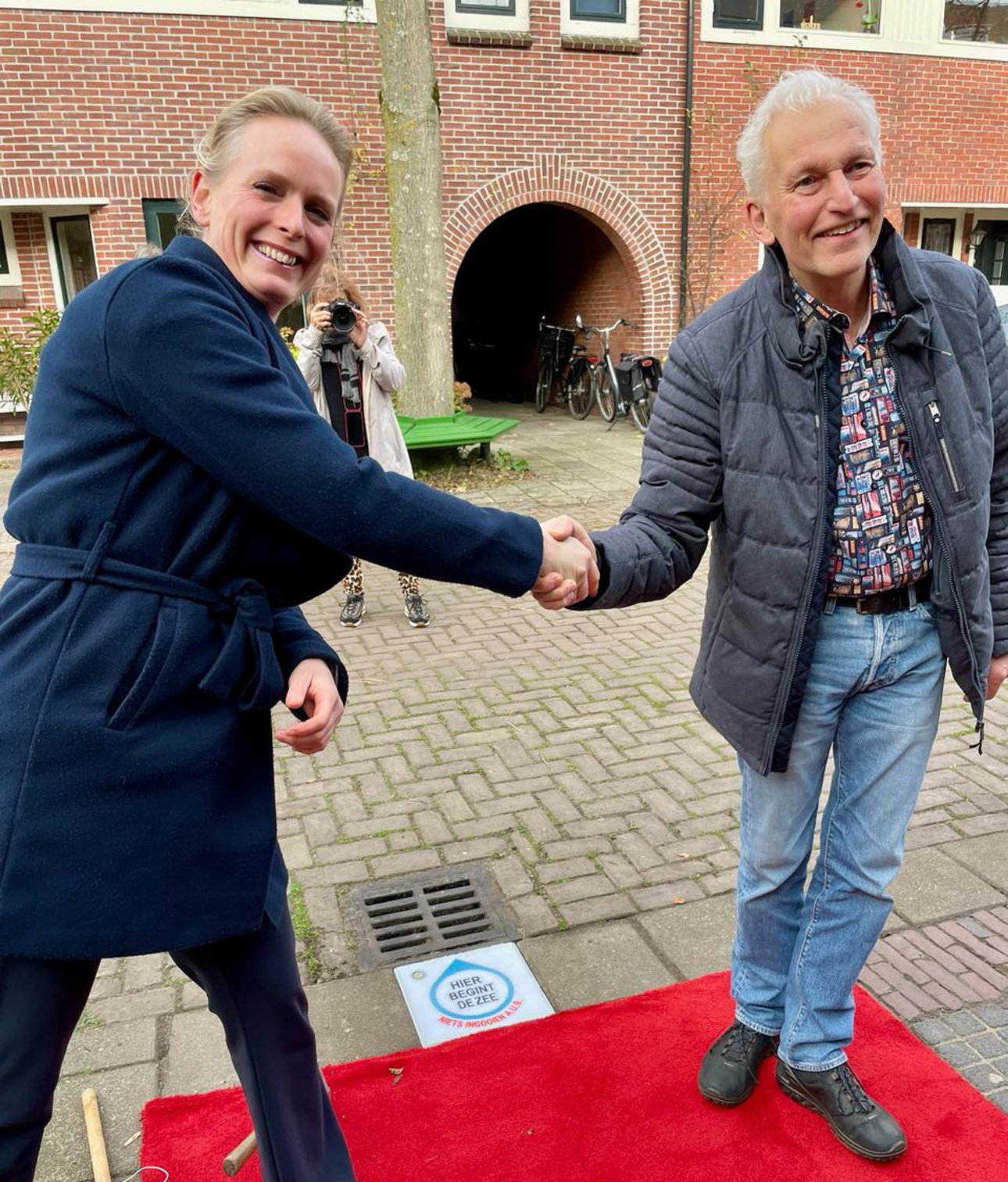 HIER BEGINT DE ZEE Wethouder Anneke Grummel legt de eerste tegel met de tekst Henk Kiewiet heeft het initiatief genomen om 13 tegels met de opdruk: HIER BEGINT DE ZEE te leggen voor meer bewustwording onder de bewoners in de Clivialaan en Hortensialaan. Gooi geen vuil in de regenwaterputjes, want die lozen het regenwater op de Leidsevaart en die loost uiteindelijk in de zee en niet op het riool. | Gescheiden rioolstelsel Veel inwoners in Heemstede weten niet dat er in een deel vanHeemstede een gescheiden rioolstelsel aanwezig is. Dat betekent dat het regenwater via de regenwaterputjes naar het oppervlakte-water stroomt en niet op het riool. Wees daarom bewust en gooi geen vuil in de putjes. Wat hoort niet thuis in de putjes: sigarettenpeukjes (bevatten microplastics), bouwafvalresten, verfresten, zeepsop enzovoort, want dat is schadelijk voor waterdieren en insecten! Informeer de bouwvakkers en schilders die met jouw woning bezig zijn om niets in de regenwaterputjes te gooien. Bouwafval in putje Hier begint de zee Ook nieuwsgierig of zo’n actie ook bij jullie in de straat mogelijk is? Neem dan contact op met gemeente en informeer naar de mogelijkheden. Op deze kaart is te zien waar in Heemstede het regenwater via de de straatputjes geloosd wordt op het oppervlaktewater. | Ontzorging verduurzaming MKB (november 2025) Wil je als ondernemer besparen op energiekosten én je bedrijf toekomst-bestendig maken? Doe dan mee aan het Ontzorgingsprogramma Verduurzaming MKB. De provincie Noord-Holland helpt je daarbij, samen met de gemeente. Wat levert het je op? |